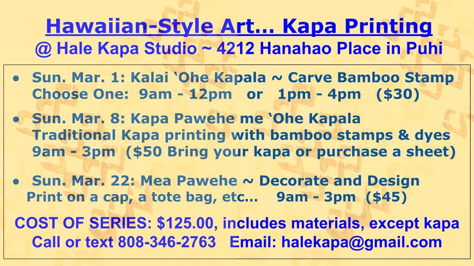 This new year my kuleana (responsibility) will continue to involve haumana (students) in kapa-making. We are building a mala garden that will feature these kapa plants: wauke, noni, kukui, ‘olena, ‘uki’uki, ma’o, and ilie’e….
