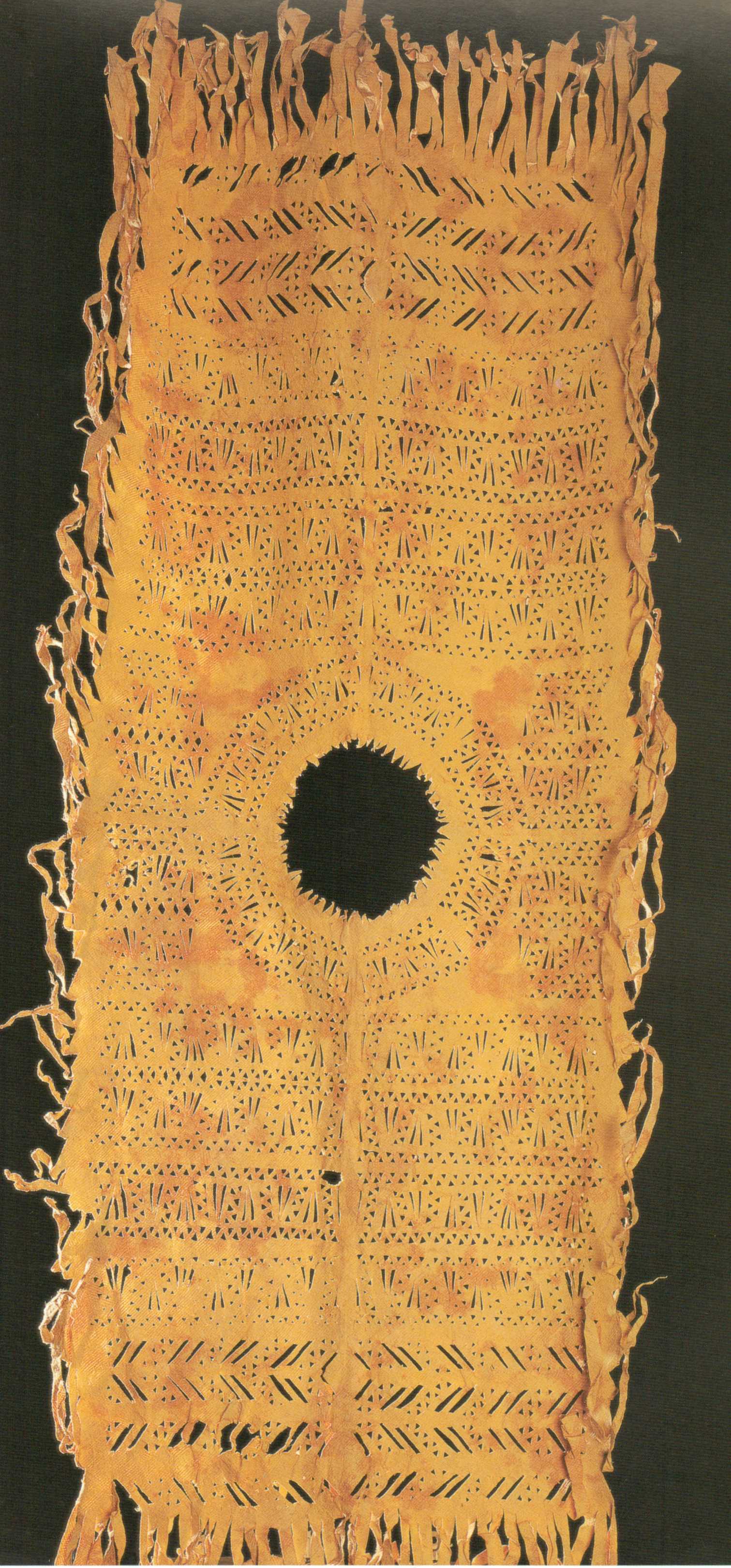 Tiputa was worn as clothing in the Cook Islands, in the Tahitian style that is believed to have been the result of the strong missionary influence. The tiputa was fashioned as a long piece of tapa that had a hole cut into the middle to be worn on the body like a poncho. Pants were made too. Articles of clothing were cut at the edges in fringes and cuts were made throughout the article in repetitive patterns, as in Futuna.